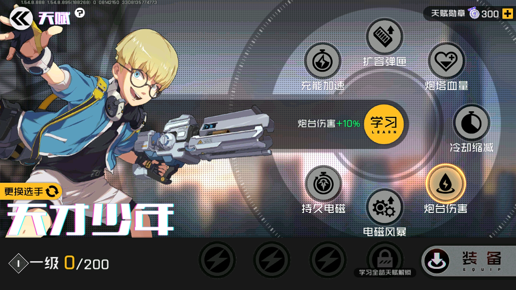 总的来说,天才少年的天赋学习重点还是围绕炮台展开,建议从1、3、4、5、7这五个天赋里挑选,这几个天赋都和炮台相关。