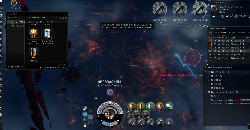 电量方面:要维持最基础的持续运作状态,因为场景里存在不少消耗电量的怪物,要是你无法把控好与它们的距离,很容易在战斗中被击杀。所以建议新手把舰船的电量维持在40%以上比较合适,如果做不到的话,可以先去进行电子相关的训练来提升操作。不过回盾毒蜥这艘舰船不在这个建议范围内,因为它不需要开启修盾装置,加力装置也同样不常使用。关于速度和攻击范围:这两者之间存在互补关系,要么舰船速度超过550,要么攻击范围(也就是无人机的控制距离)超过60千米,只要满足其中一项要求就行,不然你很容易被怪物用放风筝的战术攻击。
