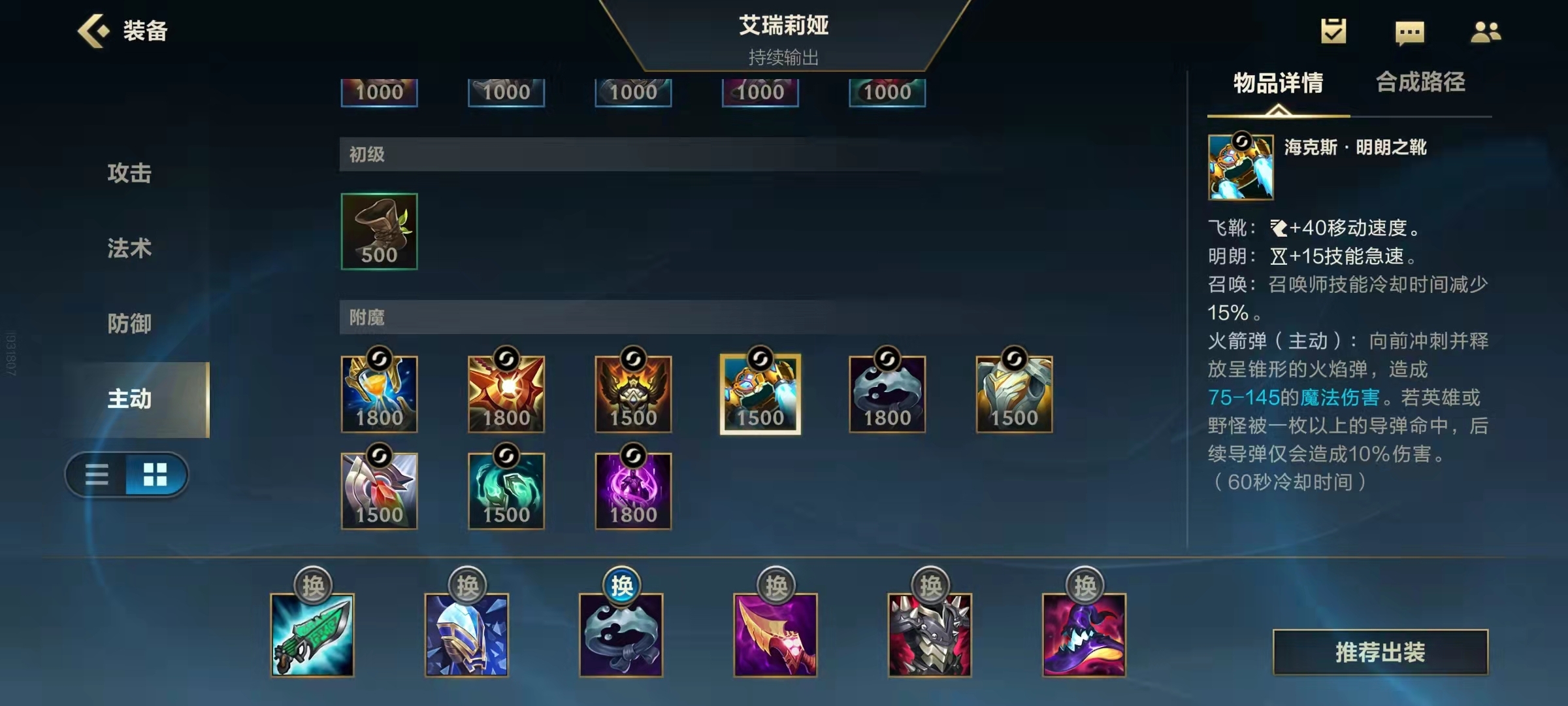 剩下的三件装备就按常规法师的思路来,全力堆叠伤害属性。法穿方面优先选择法穿棒,前期出这件装备打在敌人身上的效果近乎真实伤害,即便对手后续补了魔抗装,法穿棒的收益依然很高。最后一件装备选帽子来最大化艾克的法术强度——由于帽子能带来两倍的法强提升,放在最后出收益是最高的。另外,如果对手的续航能力较强,可以先出鬼书,它自带法穿属性还附带重伤效果,无论是伤害输出还是功能性都很出色。