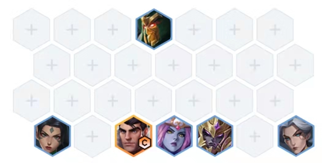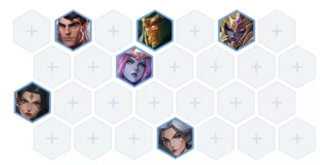 腰子放在第一排最前面的位置,剩下的英雄都沉到后排摆放,杰斯和剑魔分别站在蜘蛛的左右两侧来获取装备带来的收益,青钢影和豹女则各自放在后排的底角处。