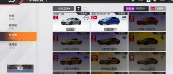 这部作品里第二梯队的赛车组别是性能组。该组别聚焦现代能源领域,集中展示各类节能环保型赛车。在性能组中,GT-R的表现最为突出——其在速度、加速度与制动性能上,已能和最高级别的极端组相媲美;同时,它兼具出色的直线行驶稳定性与转向效率,综合性能优于同组其他车型。系列中还包含主任务提供的37OZ和Impreza WRX两款车型,它们会在玩家的学习阶段全程陪伴。由于这些赛车均以现实中的新能源汽车为原型,玩家能够借此体验前沿的汽车技术与创新成果。