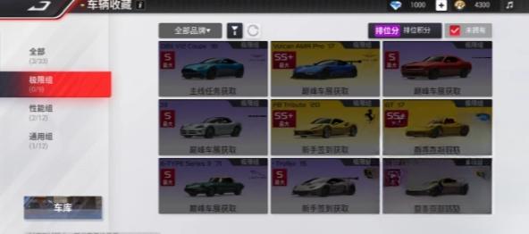 共有9辆汽车,极端组是这部作品中最具竞争力的赛车组。它是这个项目中快速汽车初始组的成员。这个组中的SS+赛车VulcanAMRPro、FBTributo和GT,在达到最高级别后都表现出色,没有缺陷。无论是在单一赛道还是像白云山那样有许多曲线的赛道上,它们都能轻松获胜,因为它们既有速度又有稳定性。这些赛车是现实中流行品牌和型号的精确复制品,给玩家带来真实的驾驶乐趣。