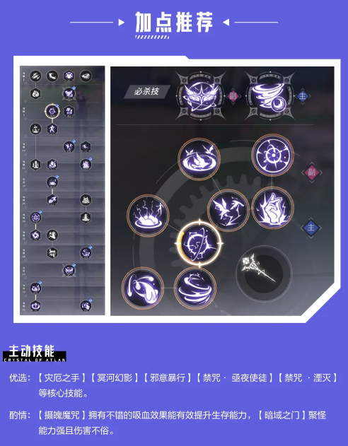 另一种转职方向“诡术师”,可选择“灾厄之手、冥河幻影、邪意暴行、禁咒·亟夜使徒、禁咒·湮灭、摄魂魔咒”的技能组合,这套点法能让魔导士的战斗方式更具多样性:灾厄之手兼具AOE伤害与控制效果,冥河幻影可从侧面提升生存能力,邪意暴行与两个禁咒技能分别负责位移和爆发输出,而最后的摄魂魔咒则能通过吸血机制保障持续作战的续航能力。