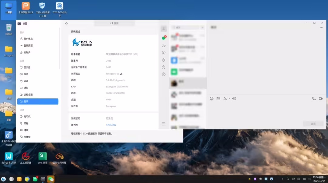 微信4.0在龙芯3A6000 + 银河麒麟操作系统上的运行截图