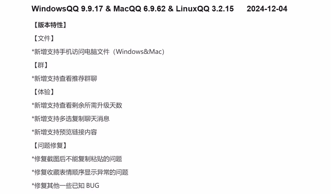 腾讯QQ今日发布新版本,适配Windows 9.9.17、macOS 6.9.62及Linux 3.2.15系统,并新增手机访问电脑文件等多项功能特性。