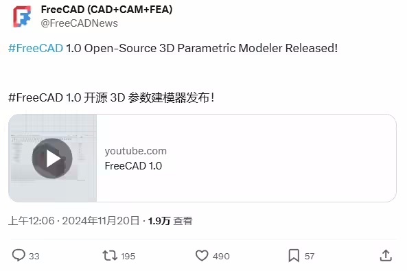 官方声明:“1.0版本并非我们的最终目标,因为FreeCAD不只是一款产品,更是我们的项目、我们的热爱与我们的工具。1.0版本凝聚了大家的共同心血,从最初参与的核心成员到新加入的翻译志愿者,每一位为项目投入的伙伴都贡献了不可或缺的力量,我们对此深感自豪。1.0版本的发布,标志着我们达成了一个具有重要意义的里程碑。”