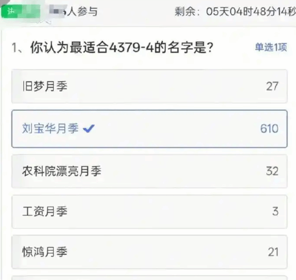 真没想到在投票里“刘宝华月季”竟然真的成了“榜一”,77.58%的得票率让它遥遥领先于其他候选。之后,云南省农科院接受了康先生的提议,把这种月季的名字定为“宝华月季”,还在网上完成了申报流程。