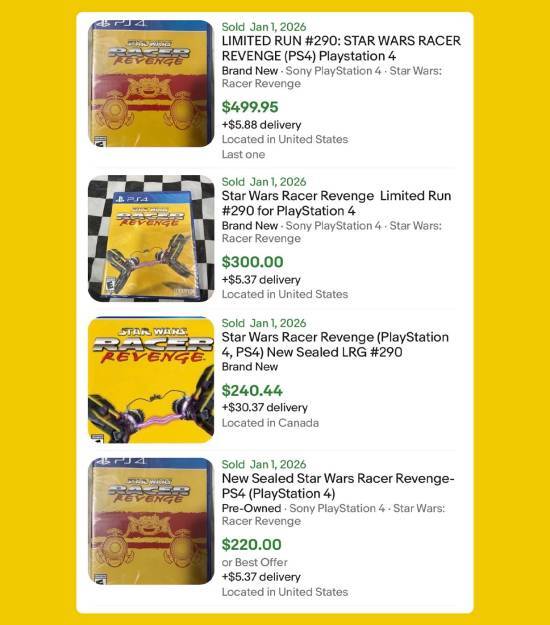 正因为如此,国外交易平台eBay的数据显示,这款游戏的价格已从原本约50美元的水平飙升至最高500美元,二手卖家们正急于借这个新发现的漏洞牟利。这并非PlayStation的某项特性首次引发价格暴涨——比如,那些还安装着《P.T.》试玩版的PS4主机,在该Demo从PlayStation商店下架后,也曾因高价出售而为人熟知。