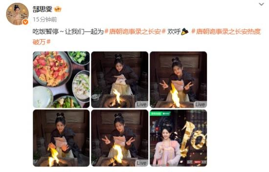@郜思雯 :“先暂停吃饭啦~大家一起为《唐朝诡事录之长安》欢呼起来吧?”