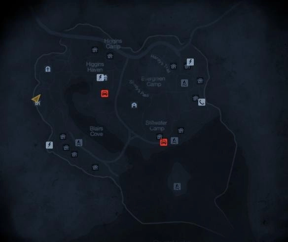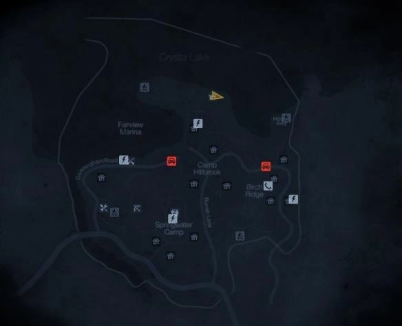 和杀鸡地图的丰富多样不同,《十三号星期五》的地图数量其实比较少,总共只有三张,分别是:帕克纳克(那栋蓝色的两层楼房)、水晶湖营地(带有修理房和湖边小屋),以及希金斯花园(有墓地和木质二层楼房)。