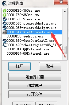 先进入游戏,接着打开CE6.6工具,点击CE界面左上角的小电脑图标,之后选择尼尔对应的游戏进程——进程会显示游戏图标,这样你应该能轻松找到,不会搞错的。