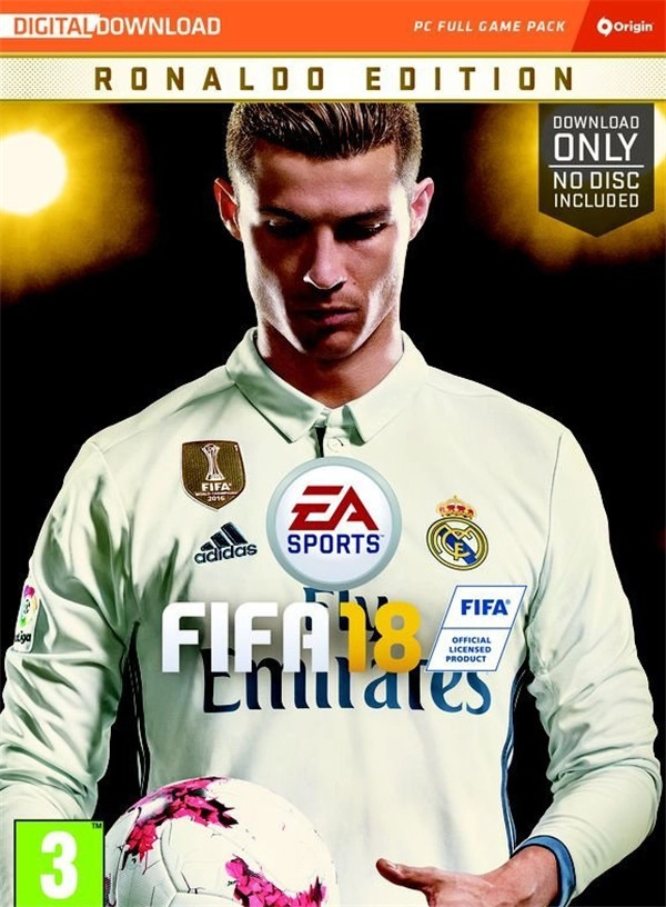 《FIFA18》将于美国时间6月5日公布,在公布前夕,微博用户EASPORTS_FIFA提前透露了本作三平台的游戏封面。不过该用户也说明这并非最终版本的封面,但封面球星确定是罗纳尔多。