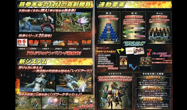下面这张杂志图展示了万代南梦宫带来的《铁拳7》相关情报,从中可以看出后续会有新人物、新角色加入,还会推出名为“狂怒”的战斗体系!和主机版相比,这款游戏的街机版将提前上市。