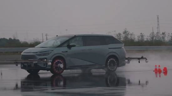 据报道,小鹏X9超级增程车型在盐城与惠州南昆山两地,启动了「全球首个极端全场景爆胎测试」。测试中模拟车辆7人满载的状态,依次完成了积水路面、暴雨天气、模拟冰面、高速绕圆、下山急弯五大场景的挑战,同时覆盖了60km/h到160km/h速度区间内的六大爆胎工况,且所有项目均顺利通过。值得一提的是,现场动用20台洒水车营造暴雨环境,在此条件下以150km/h时速进行爆胎测试,车辆依旧保持稳定未失控。