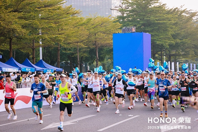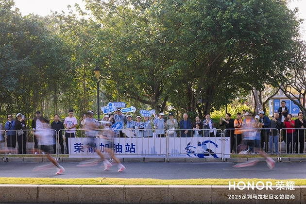 12月7日,荣耀·2025深圳马拉松在深圳鸣枪开赛,来自全球各地的三万多名跑者随着发令枪声激情开跑。作为连续四年冠名赞助深圳马拉松的合作伙伴,荣耀携全场景智慧运动生态产品深度参与其中,通过在赛道沿途设置补给站、能量加油站和品牌服务展区,助力每一位跑友尽情享受深马的速度与激情,跑出优异成绩。