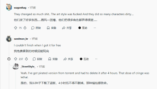 许多玩家表示,即使是免费或盗版渠道,也无法坚持玩完这款游戏:
