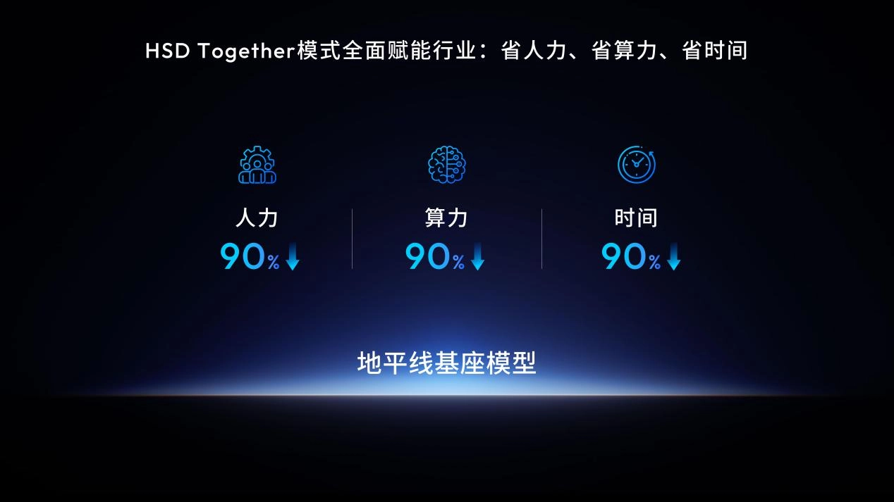 今天,地平线对外宣布,将自身经过验证的全栈技术能力,通过全新的“算法服务”模式——HSD Together,向整个行业全面开放。在这一模式框架下,地平线与合作伙伴将在清晰明确的分工基础上开展深度共创。合作伙伴可集中精力深耕自身优势领域,例如系统集成测试、车型适配开发、功能定制开发以及硬件与底层软件交付等工作;而地平线则会提供贯穿产品开发全生命周期的“算法服务”,具体涵盖数据服务与艾迪SaaS平台、专业的算法适配工程与咨询服务,以及最核心的基座模型授权。余凯介绍道:“HSD Together算法服务模式的核心目标,是让合作伙伴能够依托地平线已验证的成熟智能基座,将产品开发过程中的人力投入、算力消耗以及上市周期,都大幅降低90%。我们希望让每一家企业,都能更轻盈、更迅速地将顶尖的智能驾驶能力,转化为自身品牌的独特竞争优势。”