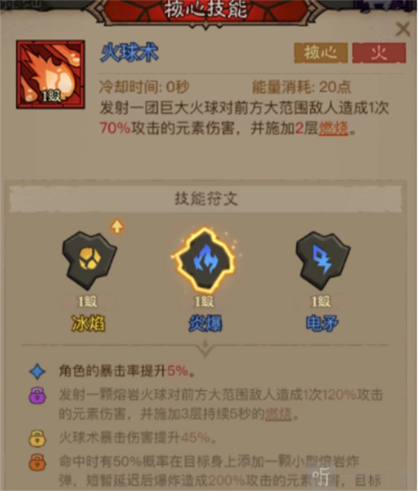 核心技能:火球术(具备可叠加燃烧效果,是高频输出的关键核心技能)