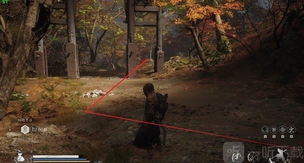 接着径直向上行进,来到上层(途中会经过独木桥),随后在上层土地庙周边会有一只