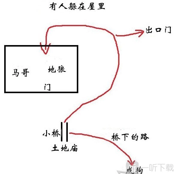 村口土地庙→走村口小桥下的路,遇到戌狗→旁边大坑打浪里个波→丹方交给戌狗